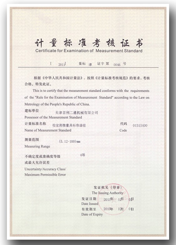 計量標(biāo)準(zhǔn)考核證書