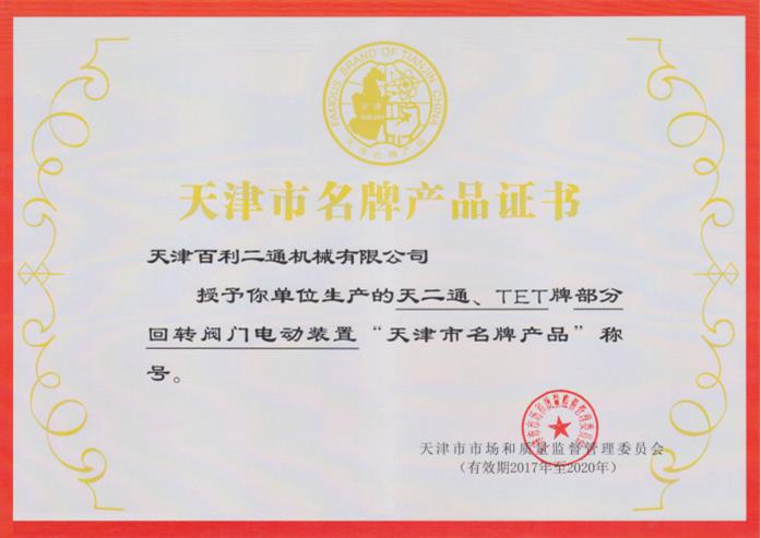 部分回轉(zhuǎn)閥門電動(dòng)裝置名牌產(chǎn)品證書(shū)
