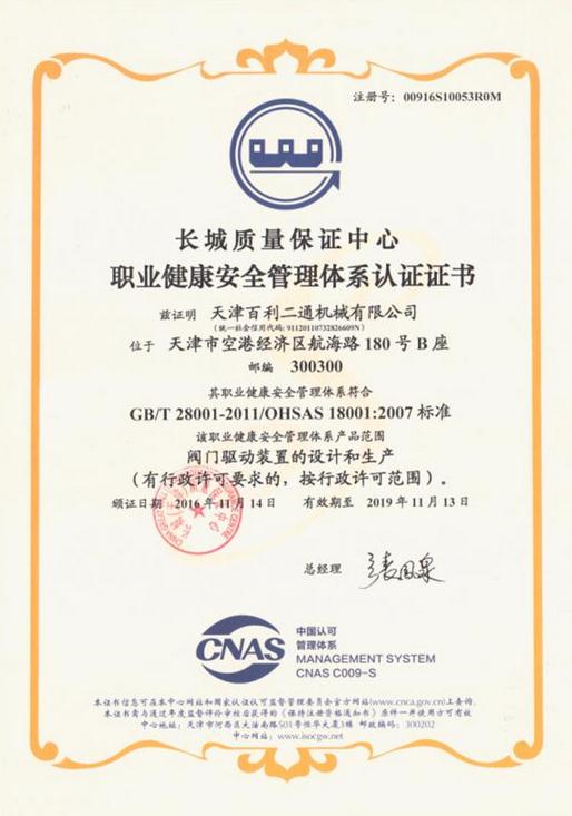 公司于2016年10月取得了ISO14001環(huán)境管理體系認證和OHSAS18001職業(yè)健康安全管理體系認證,完善了三個體系認證。企業(yè)進行三個體系的認證世界性的趨勢,是企業(yè)參與國際貿易、提高自身競爭的自覺要求,也是企業(yè)遵法守信、誠實負責的體現(xiàn)形式。