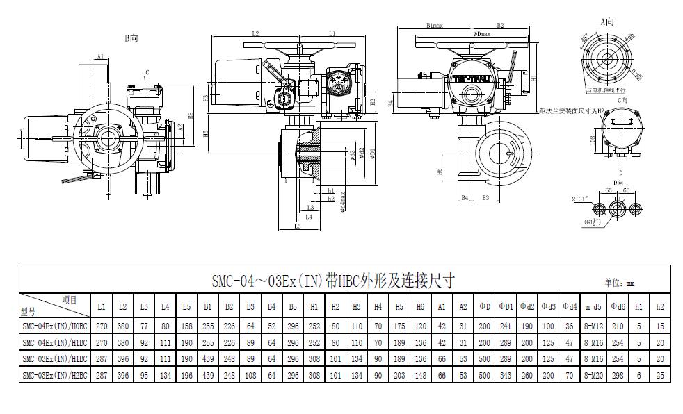 SMC/HBC系列電動(dòng)裝置是SMC系列多回轉(zhuǎn)電動(dòng)裝置與HBC蝸輪減速器的組合型式,它適合球閥、蝶閥等部分回轉(zhuǎn)閥門(mén)的驅(qū)動(dòng)控制。SMC/HBC電動(dòng)裝置具有以下特點(diǎn):結(jié)構(gòu)設(shè)計(jì)堅(jiān)固可靠,產(chǎn)品規(guī)格齊全,驅(qū)動(dòng)轉(zhuǎn)矩范圍大且動(dòng)力輸出穩(wěn)定, 具有良好的自鎖性能。 HBC輸出軸結(jié)構(gòu)獨(dú)特,裝有與閥桿連接的漸開(kāi)線花鍵接頭,產(chǎn)品的安裝調(diào)試方便。