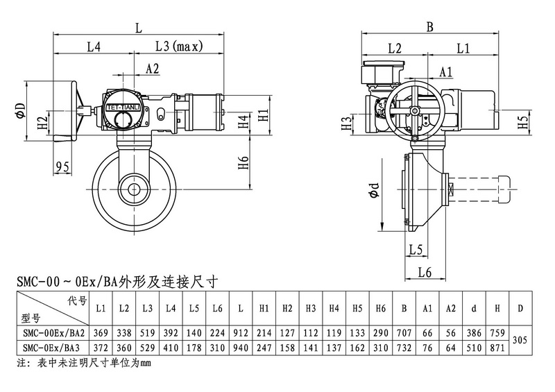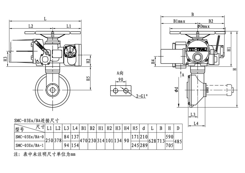 SMC/BA系列電動(dòng)裝置是SMC系列中小轉(zhuǎn)矩多回轉(zhuǎn)電動(dòng)裝置與BA圓錐齒輪減速器的一種組合型式,它適合閘閥、截止閥等多回轉(zhuǎn)閥門(mén)的驅(qū)動(dòng)控制。SMC/BA電動(dòng)裝置具有以下特點(diǎn):以較小轉(zhuǎn)矩規(guī)格的SMC電動(dòng)裝置與BA減速器組合可獲得更大的輸出轉(zhuǎn)矩。在輸出轉(zhuǎn)速允許的條件下,選用該產(chǎn)品能夠提高所選電動(dòng)裝置規(guī)格的通用性,便于產(chǎn)品的使用、維護(hù)。